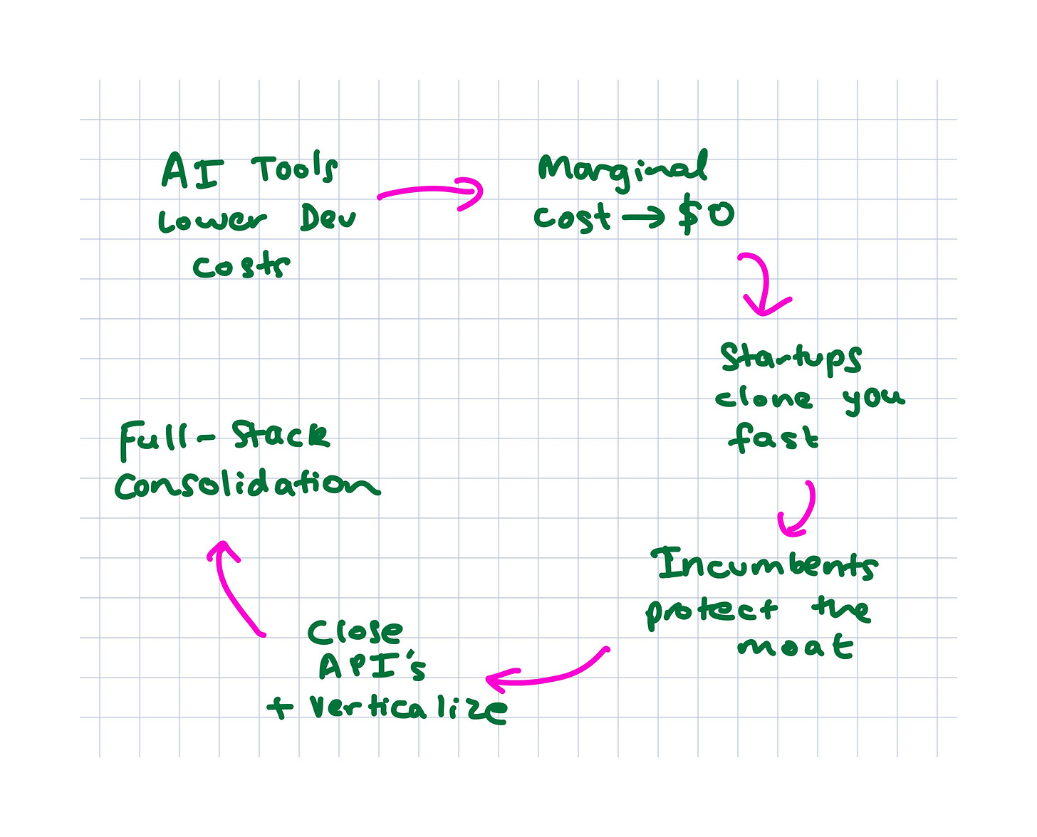 There’s a pretty clear reason for this: the pace of software development, thanks to AI tools, is accelerating, and the marginal cost of competing with an incumbent in any category is driving to zero. Why would Salesforce allow anyone, even a series A startup, to compete using their data?
