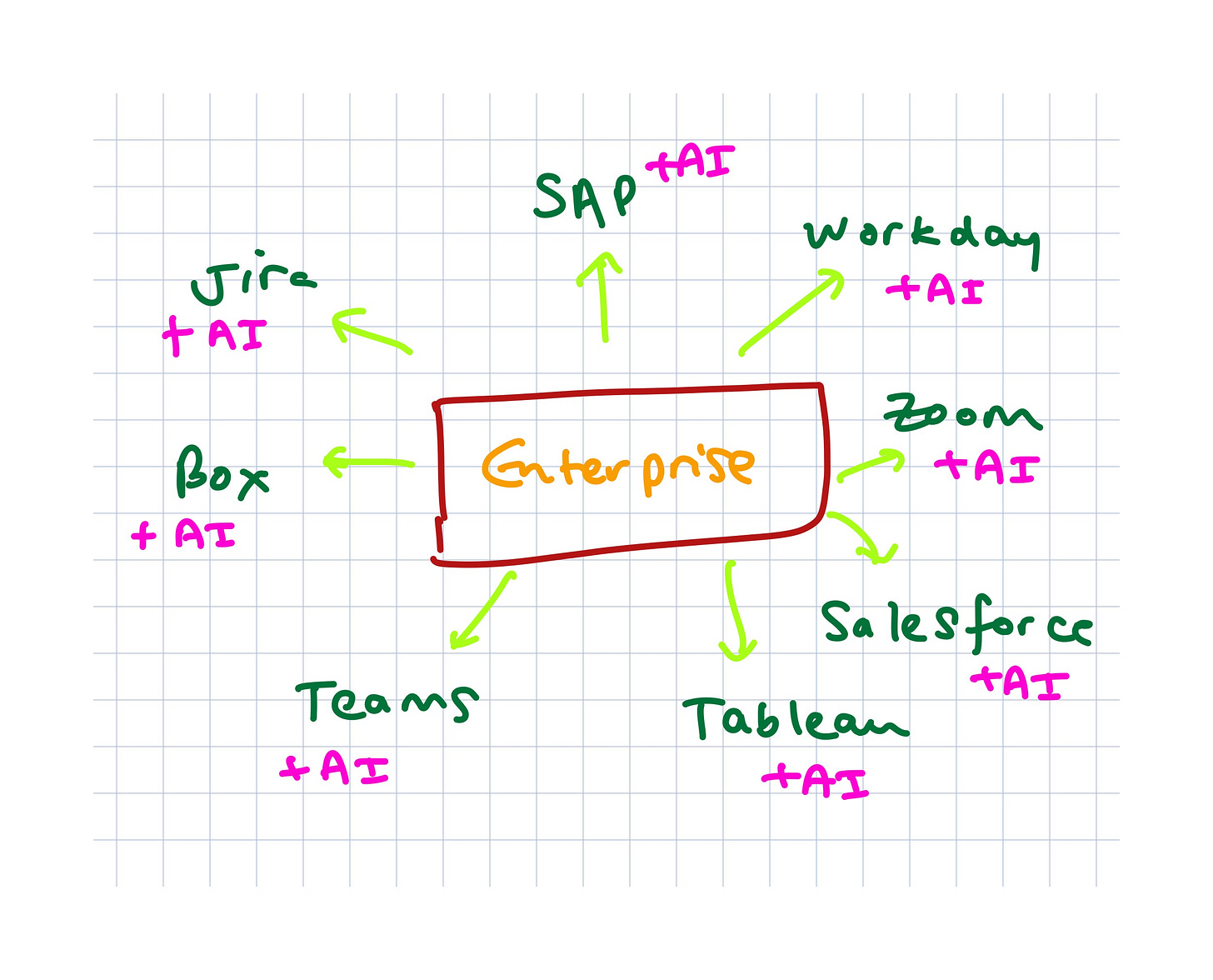 Needless to say this is a tremendously valuable platform layer to control, because it dictates the interpretation and usage of all underlying systems. It might be easy enough to switch out a single underlying SaaS tool (+agent), but it is certainly not easy to replace a layer that understands the full scope of your business context and continues to learn and get better. It’s a huge moat.